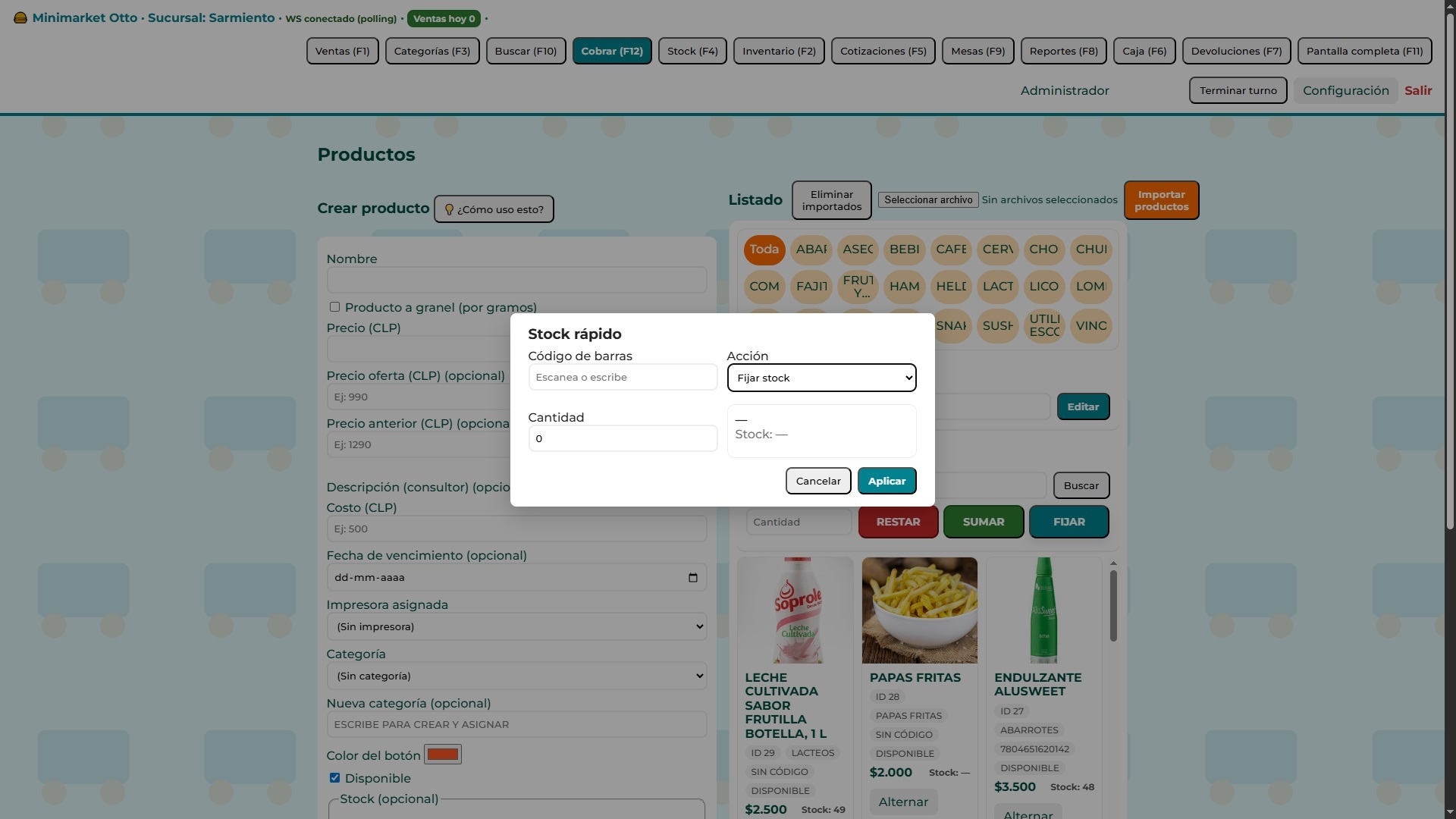 Productos por categoría, favoritos, búsqueda y cobro en pocos pasos.
